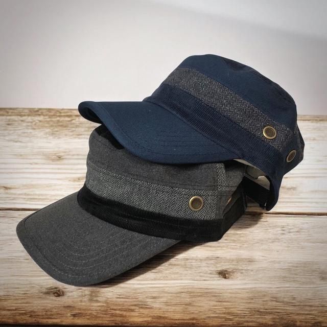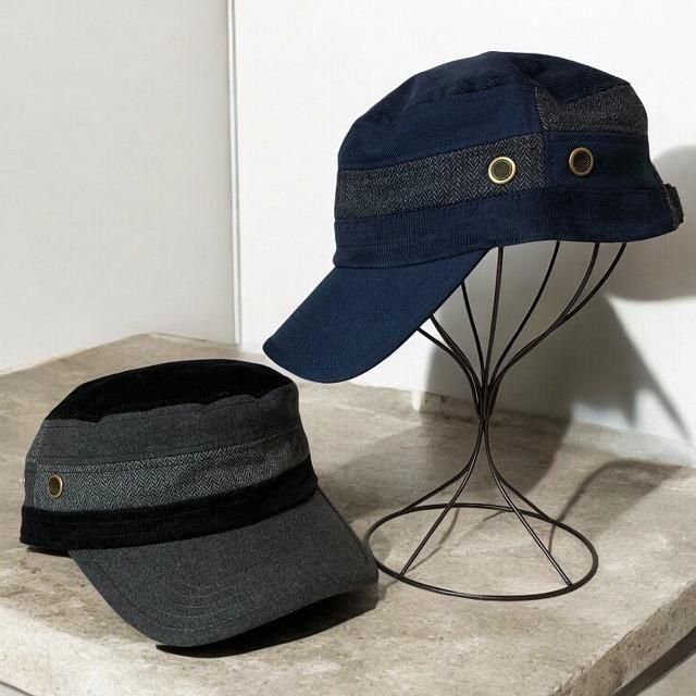 ヘリンボーン・コーデュロイ・ツイードの3種の冬素材の切替デザインがおしゃれなワークキャップ!