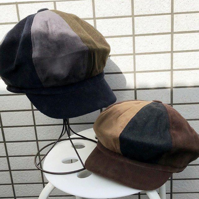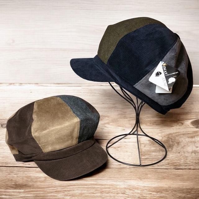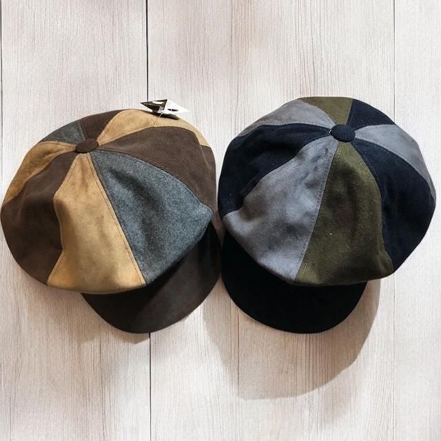 PUスエード,メルトンウール,コーデュロイの3種の冬素材の切り替えデザインが目を惹く、2WAY仕様の8パネルキャスケット!