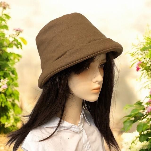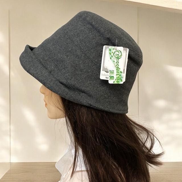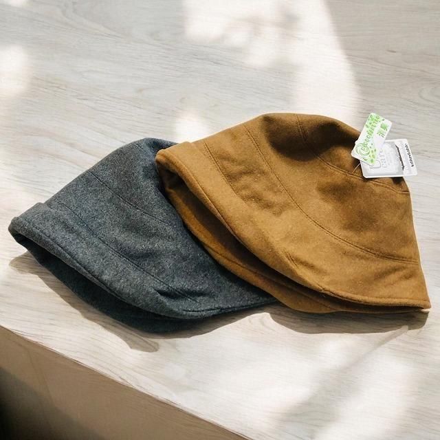 軽くて通気性のいいサーモニット使用のシンプルなデザインのバケットハットの秋冬バージョン