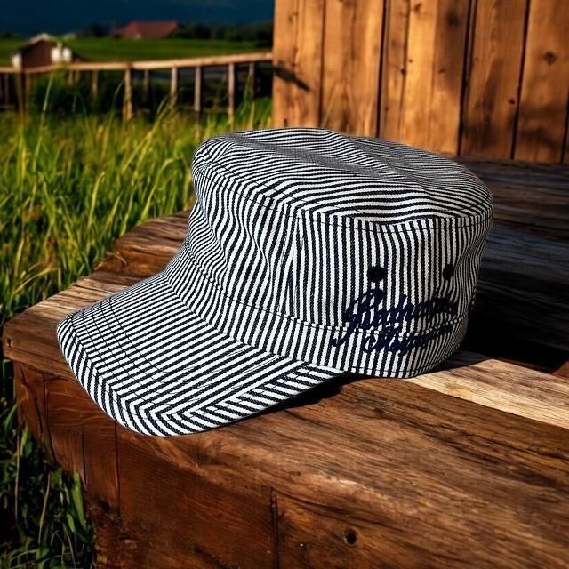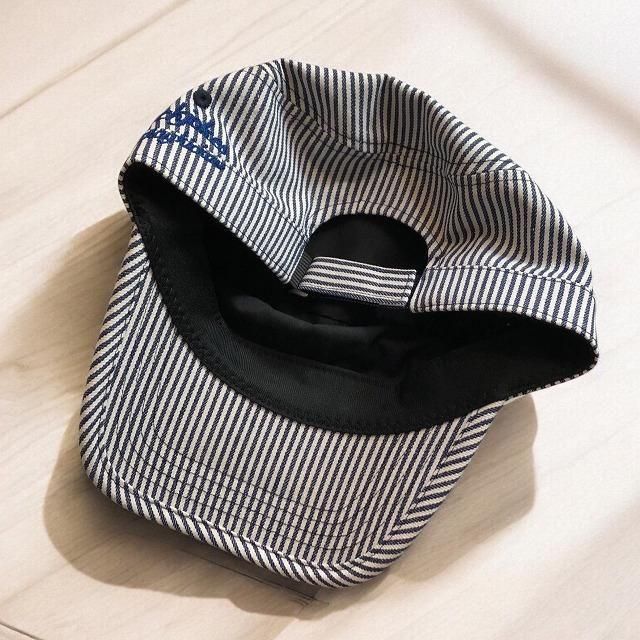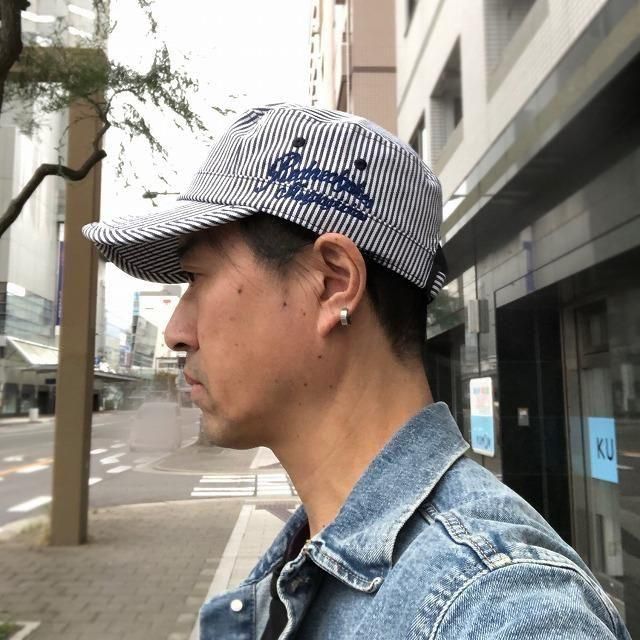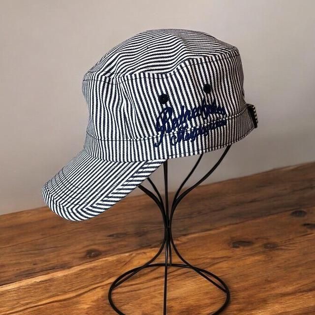 ベーシックで使いやすい!コットン地のヒッコリーストライプの刺しゅう入りワークCAP!