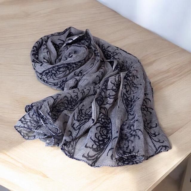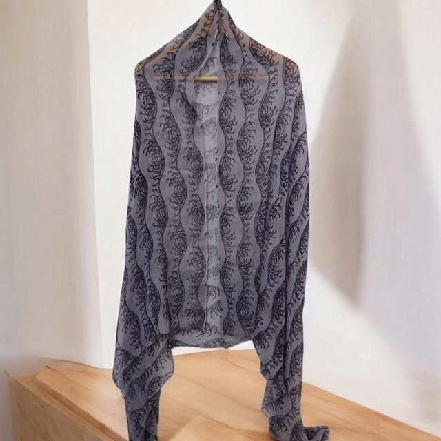 軽いインド綿使用の唐草柄が粋な大判ストール♪