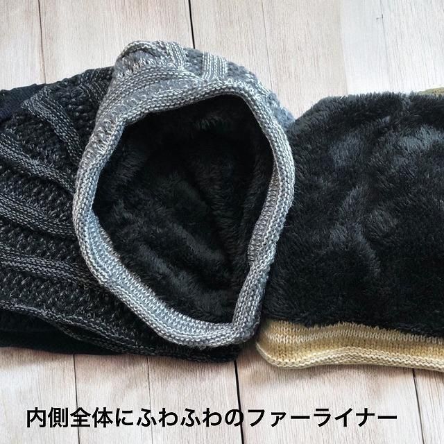 アクリルニット使用で裏地にファー。防寒性は高い上に、ちくちくしないという、かなり被りやすいアイテムです。