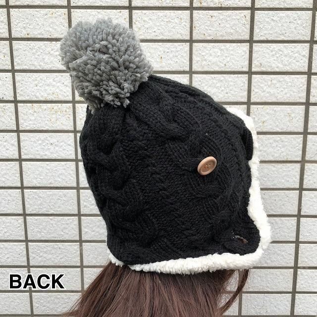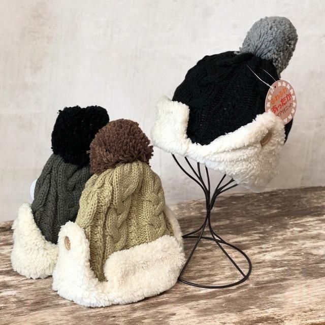 今季も注目のフライトキャップ風のデザインがおしゃれ♪もこもこボアの裏地付きのポンポンニット帽!!