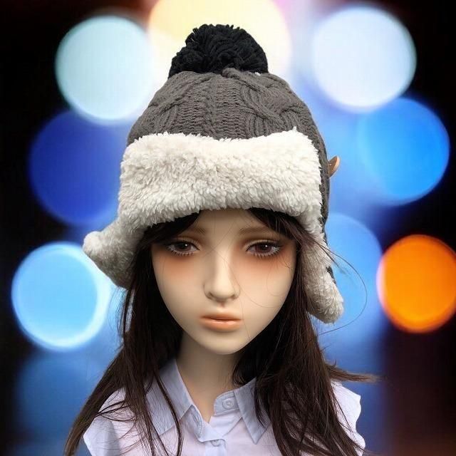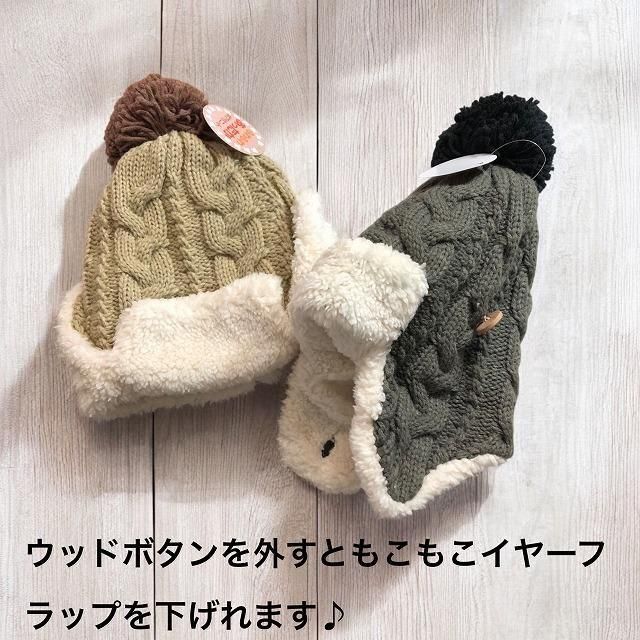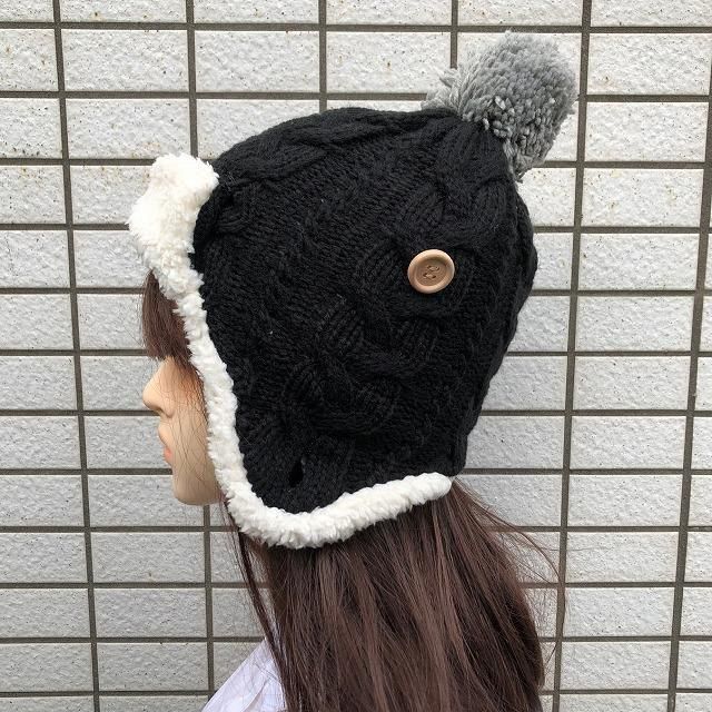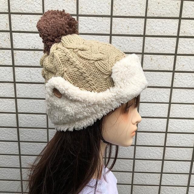 今季も注目のフライトキャップ風のデザインがおしゃれ♪ボアの裏地付きのポンポンニット帽!!