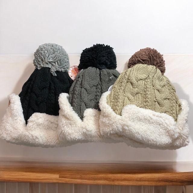 ふわふわファーの裏地付きであったか♪リブ編みのシングルタイプのニット帽!!