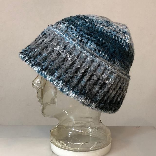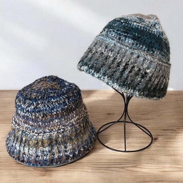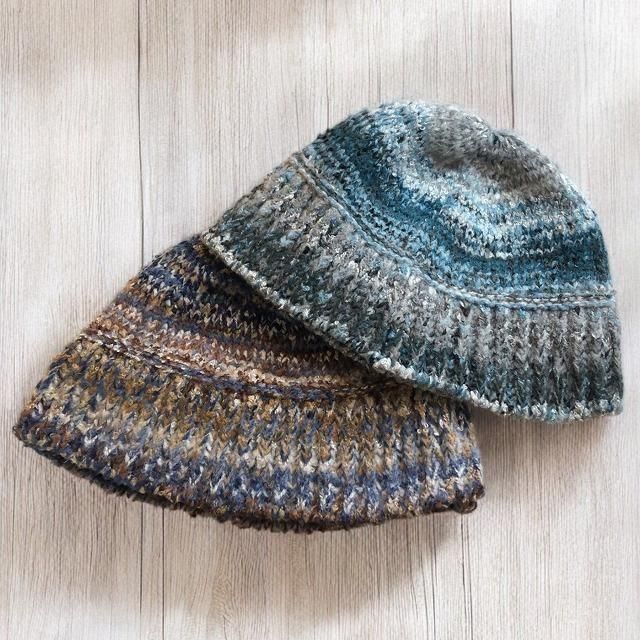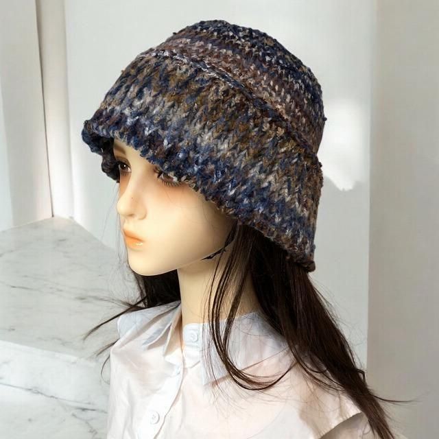 カラフルなざっくり編みのミックスニットがきれいな、ゆったりすっぽり深めに被りやすいクラッシャーハット!